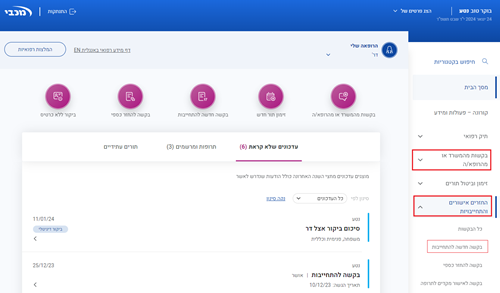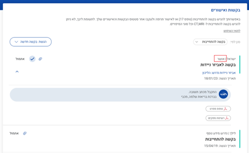 תוכלו לראות אם הבקשה במצב: חדש, בטיפול, אושר או נדחה.