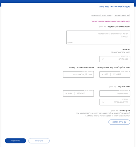 - תוכלו להוסיף הערות נוספות לבקשה אם יש צורך.