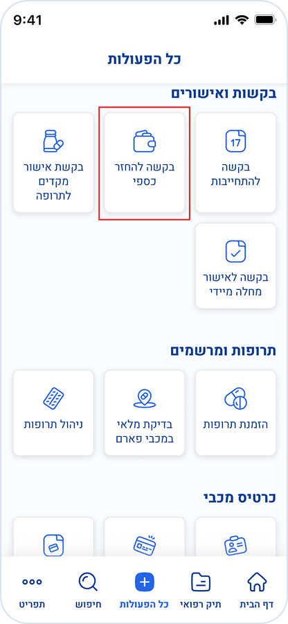 ניתן להגיש בקשה להחזר כספי באפליקציה או באתר מכבי Online בכמה שלבים פשוטים: