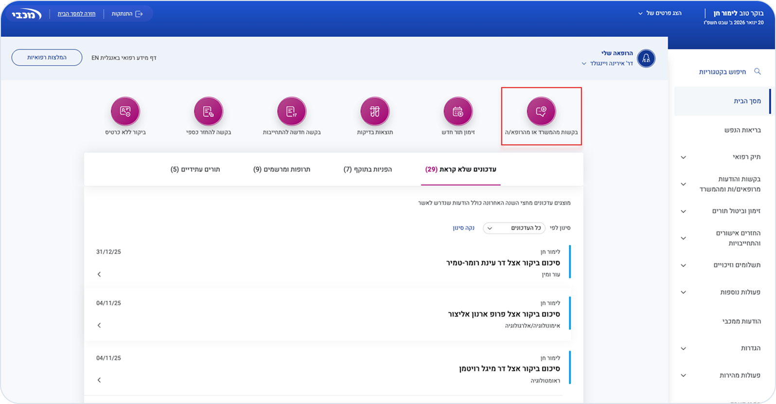 לחצו על "בקשות והודעות מרופאים".