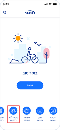 לחצו על "ביקור ללא כרטיס" במסך הכניסה של האפליקציה ובצעו הזדהות