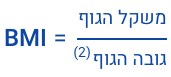 הנוסחה לחישוב ה-BMI היא: משקל הגוף לחלק לגובה הגוף בחזקת שתיים