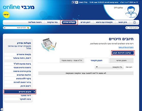 לחצו על כפתור "עדכון הוראת קבע".